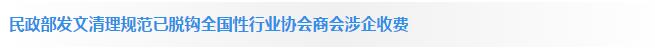 民政部近日发出通知,清理规范已脱钩全国性行业协会商会涉企收费。通知明确,清理规范行业协会商会收费的范围,包括行业协会商会收取以企业为缴费主体的会费、经营服务性收费、行政事业性收费、其他收费等各种收费。