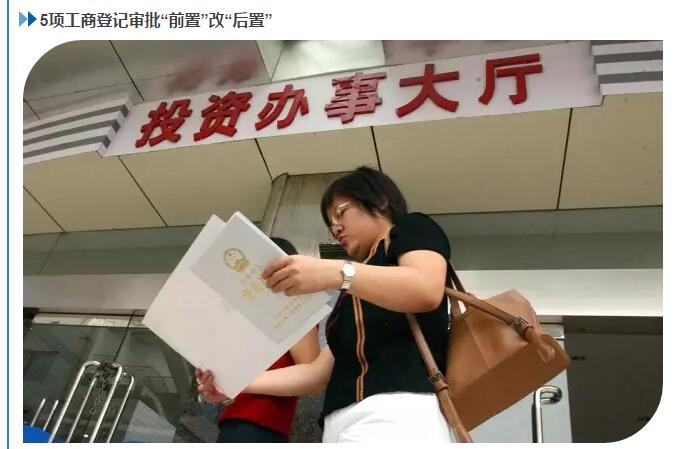 5月,国务院印发《关于进一步削减工商登记前置审批事项的决定》。此次再削减工商登记前置审批事项5项。至此,工商登记前置审批事项87%改为后置审批或取消。 详细阅读 >>
