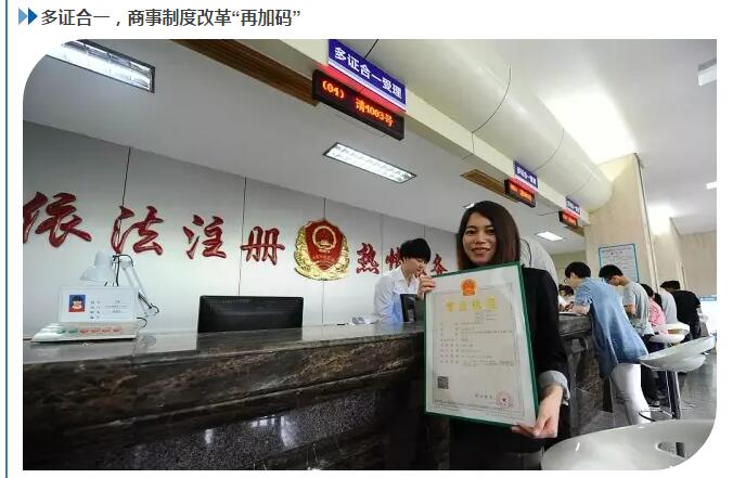 5月,国办印发《关于加快推进“多证合一”改革的指导意见》,在全面实施“五证合一、一照一码”登记制度改革和“两证整合”的基础上,将涉及企业(包括个体工商户、农民专业合作社)登记、备案等有关事项和各类证照进一步整合到营业执照上,实现“多证合一、一照一码”。 详细阅读 >>