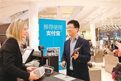 图为芬兰最大百货商场斯托克曼引入支付宝支付作为商场购物支付方式。新华社记者 李骥志 摄